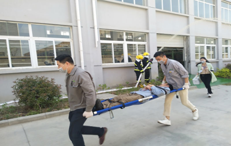 與此同時,生化小組成員迅速前往火災區域廠房,將危化品轉移至安全區域,醫療救護組及時對受傷人員進行簡單救治,并進行轉移救治。